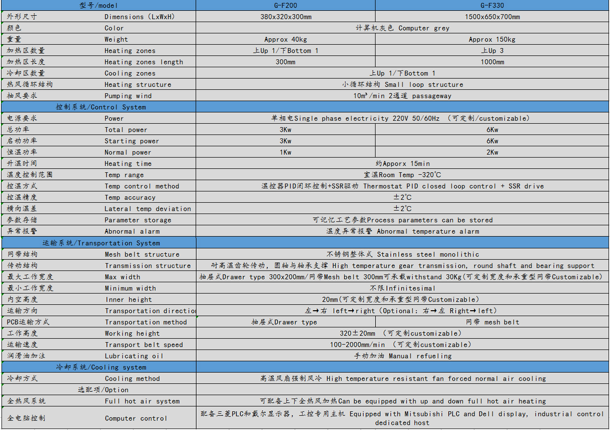4、相邻温区差别MAX可达100℃,不串温,每个温区之温度和热风风速独立可调节,运输采用变频控制、湿度控制精度可达±10mm/min,特别适合 BGA/CSP及0201等焊接